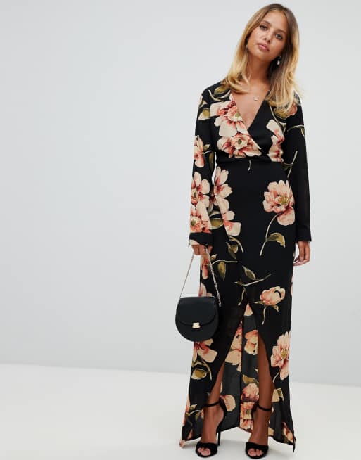 Girl In Mind Long Sleeve Floral Wrap Maxi Dress Asos