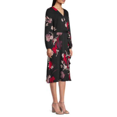 Liz Claiborne Long Sleeve Floral Wrap Dress Color Black Floral Jcpenney